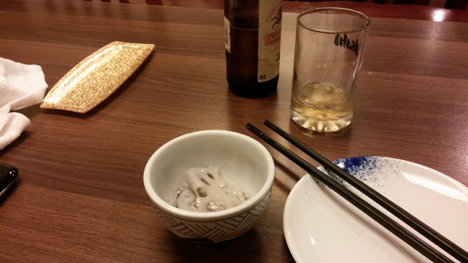 お通しで出されたレンコンが冷蔵庫の味するんだよね。
