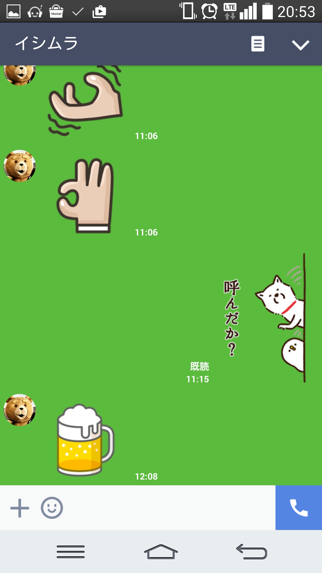男同士の会話だと、往々にしてスタンプだけで終わらせるんだよね。